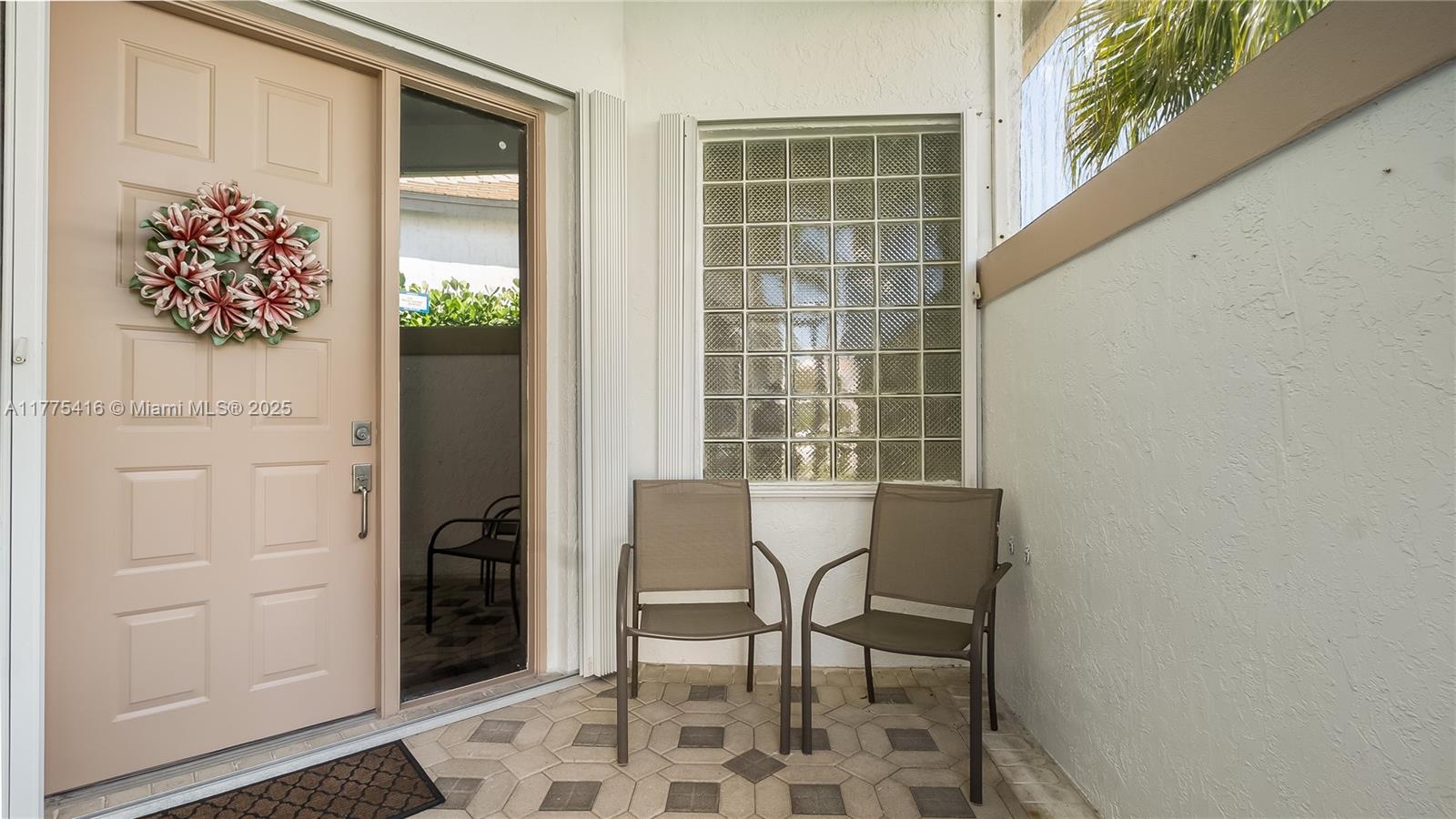 This beautifully updated 3 bedroom, 2.5 bath home is situated on the golf course, overlooking the scenic 16th tee. Featuring an expansive open floor plan with soaring vaulted ceilings, this home offers a bright and airy living space.The modern kitchen with 48" gray cabinetry, glass subway tile backsplash, quartz countertops, and stainless steel appliances. The home is equipped with hurricane accordion shutters and generator ready. White tile flooring throughout with laminate flooring in the master bedroom. The oversized master suite features a spacious walk-in closet with custom built-ins, and bathrooms have been fully renovated with sleek, modern finishes. Residents enjoy resort-style amenities, including a clubhouse, swimming pool, hot tub and clubroom. This is a guard gated community.