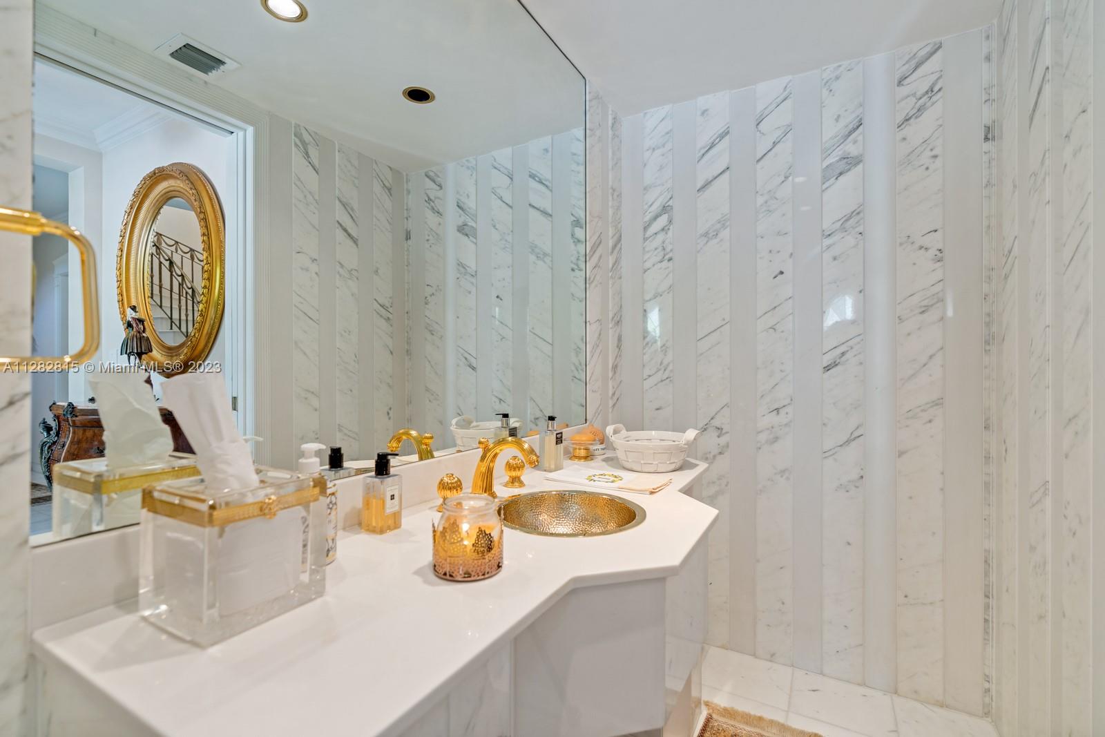 From the moment of arrival, a balance between grandiose architectural elements and thoughtful, understated details set the tone for this magnificent, waterfront Estate. Nestled on an almost 30,000 SF, pie shaped lot and located in the exclusive and gated Sunset Islands, this home is the epitome of luxury living. Enjoy 5,413 SF of living area including 5 beds, 7/1 baths, an office, grand room and stunning oak wood bar. Transform this sanctuary into your personal paradise. Outdoor balconies, oversize terrace, lap pool, manicured lawns and almost 200’ of water frontage with direct ocean access provide for majestic living indoors or out. Enjoy the private side of Miami Beach while still being steps away from world class dining, shopping and entertainment.
